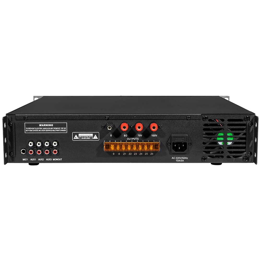 - Chế độ đầu ra: 8Ω 70V/100V, 70V/100(120V). Năm hoặc sáu vùng định tuyến