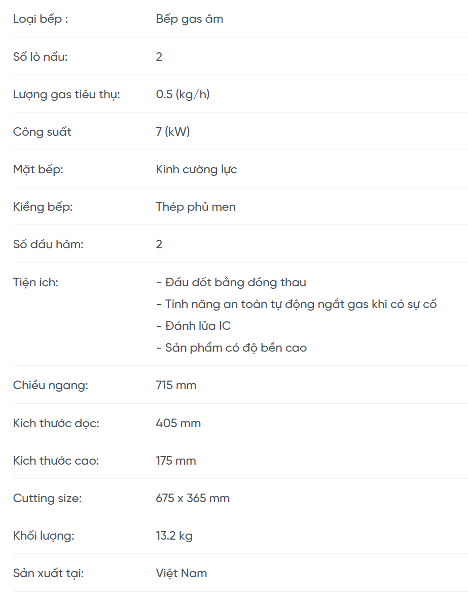 - Tính năng an toàn tự động ngắt gas khi có sự cố