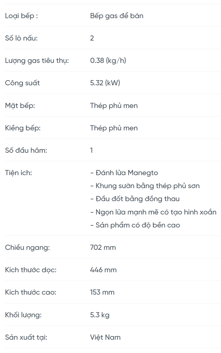 Bếp gas để bàn 702mm mặt bếp phủ men - Rinnai RV-377(G)N