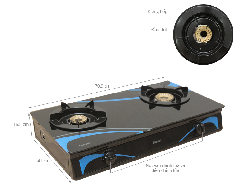 Chất liệu đồng thau cho đầu đốt bền bỉ, ít bị bào mòn, tạo ngọn lửa xanh giúp nấu ăn không đen nồi chảo.
