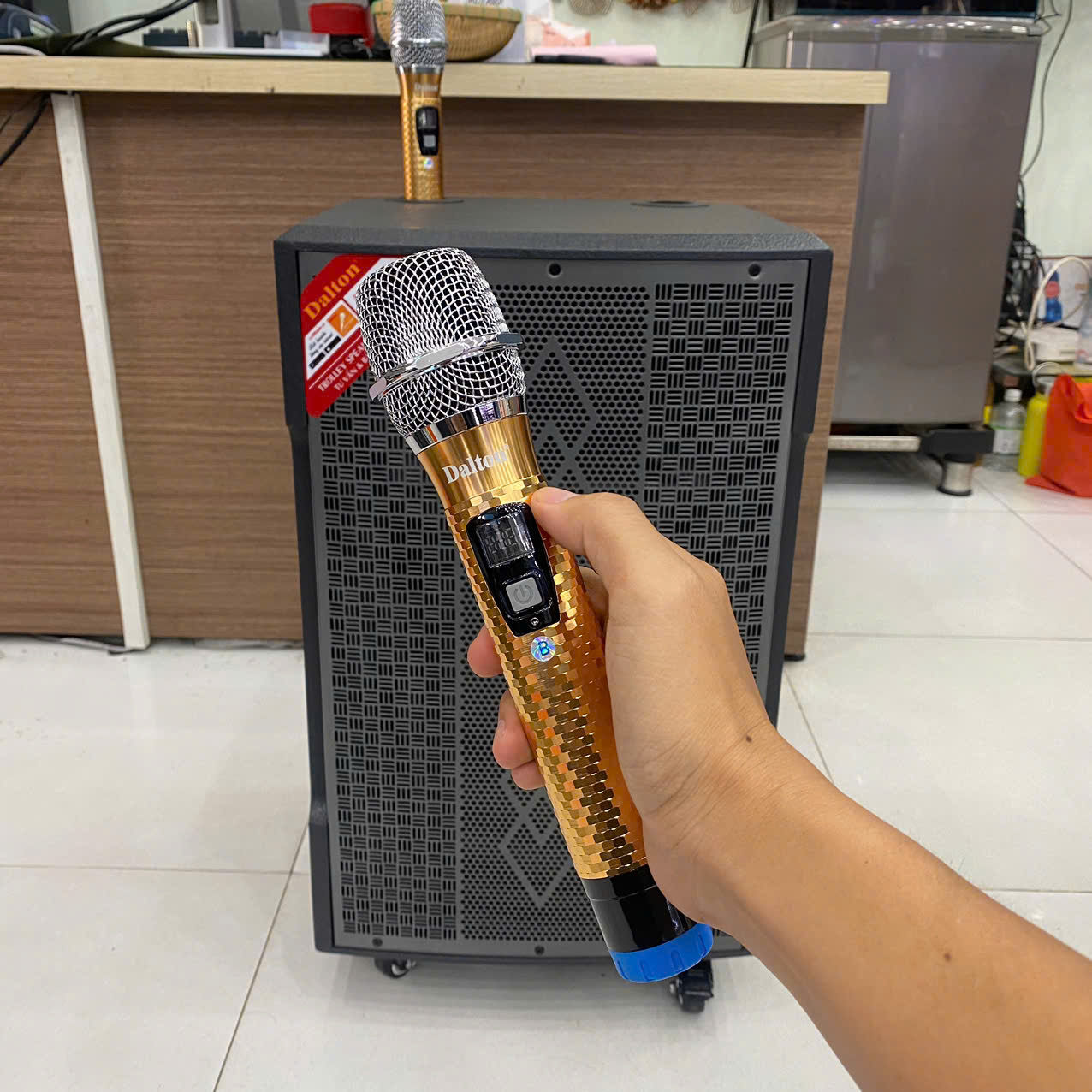 Loa Dalton TS-12G400XP đi kèm là 02 micro không dây sóng UHF. Việc sử dụng tần số UHF giúp cho việc kết nối và truyền tín hiệu micro được chuẩn và ổn định hơn. 02 micro không dây được làm bằng chất liệu kim loại nguyên khối màu vàng lấp lánh mang đến nét thẩm mỹ và sang trọng. Đặc biệt micro không dây có khả năng chỉnh được 16 tần số kết nối. Việc này giúp cho loa tránh trường hợp trùng lặp tần số micro với các loa khác ở gần.