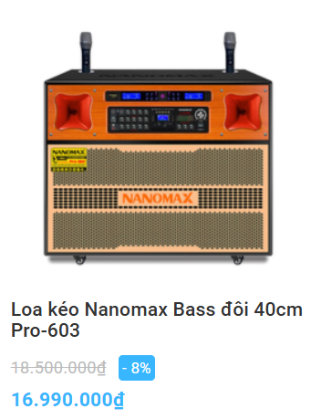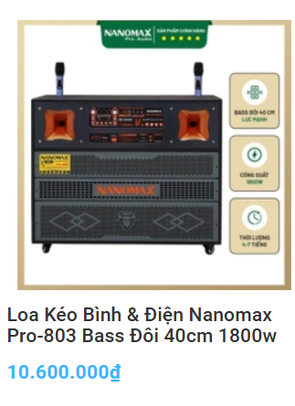 1.Loa Kéo Bình & Điện Nanomax Pro-803 Bass Đôi 40cm 1800w