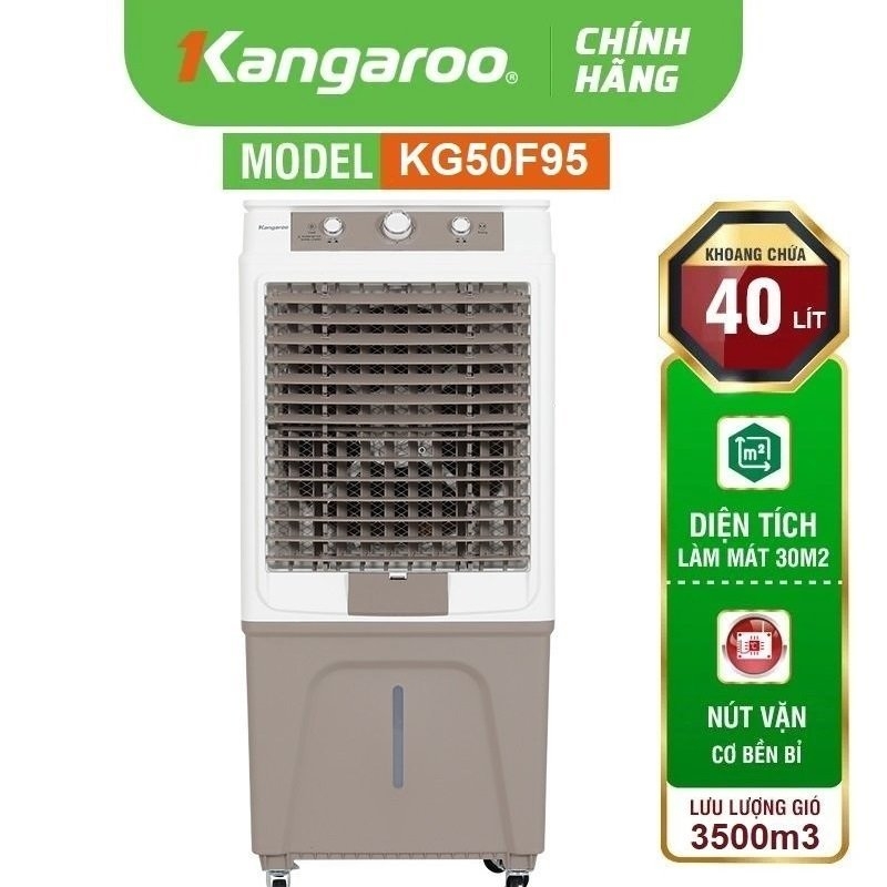 Máy làm mát không khí Kangaroo KG50F95 với thiết kế mới bền bỉ, dễ sử dụng với điều khiển nút nhấn và nút xoay cơ, dễ dàng di chuyển tới nhiều vị trí và đáp ứng nhu cầu làm mát cho các không gian gia đình, văn phòng, nhà hàng,… hiệu quả.