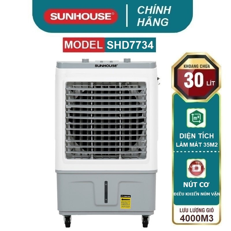 Máy làm mát không khí - quạt điều hòa SUNHOUSE SHD7734 có động cơ làm bằng đồng nguyên chất siêu bền, hoạt động ổn định. Thân máy làm bằng nhựa cao cấp bền đẹp, màu sắc trang nhã và sử dụng tốt ở không gian lên đến 35m2 như cửa hàng, quán cafe, nhà xưởng,...