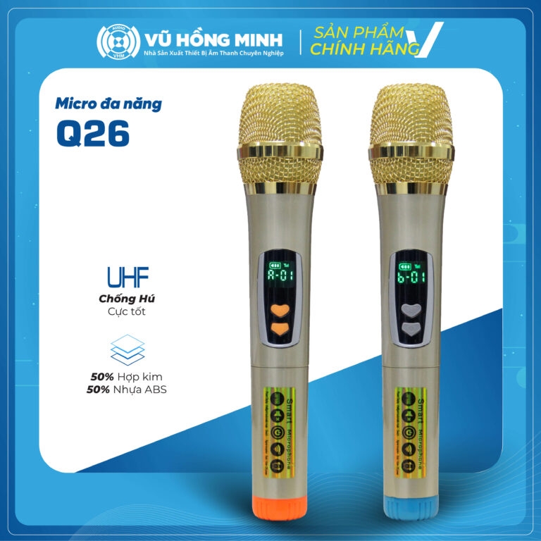 Micro đa năng Q26 là dòng micro cầm tay của VHM với thiết kế hiện đại, thân micro được cấu tạo từ 50% hợp kim và 50% nhựa ABS cao cấp, vừa chắc chắn vừa hạn chế trầy xước khi sử dụng.