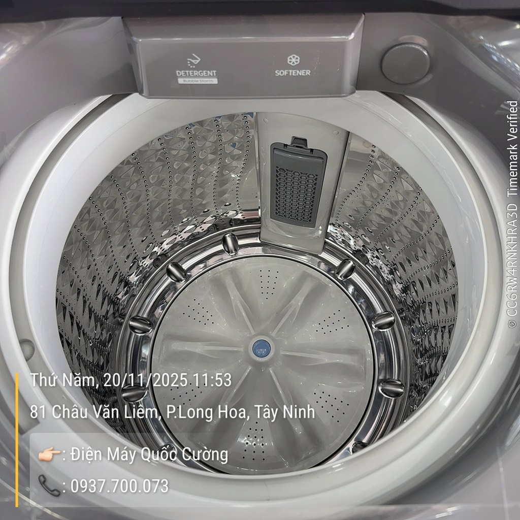 - Máy giặt Samsung Ecobubble Inverter WA17CG6442BDSV là máy giặt lồng đứng - cửa trên được thiết kế tối giản với màu xám chủ đạo, dễ ứng dụng trong các không gian nội thất.