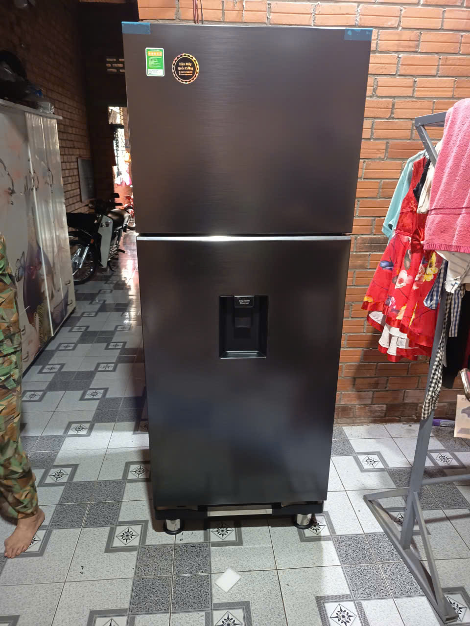- Thiết kế hiện đại: Kiểu dáng ngăn đá trên truyền thống với gam màu đen sang trọng, tạo điểm nhấn tinh tế cho không gian bếp.