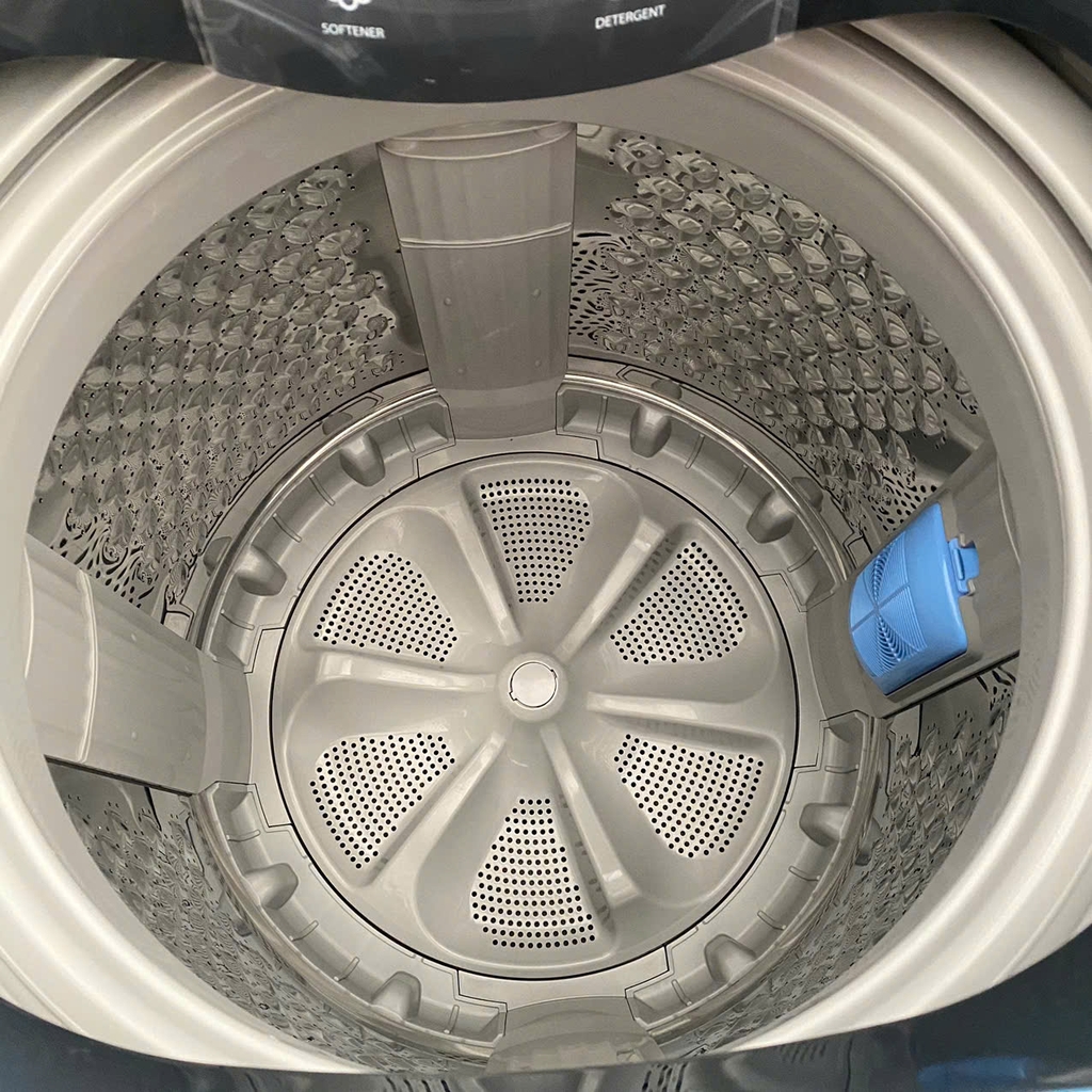 - Lồng giặt được thiết kế với dạng các gờ nổi hình ngôi sao, xen kẽ đó là các lỗ nhỏ dẫn nước khắp lồng giặt, tác động lên quần áo tạo ra hiệu ứng chà xát quần áo như giặt tay, tránh làm hư tổn quần áo. Ngoài ra, lồng giặt được làm bằng thép không gỉ giúp hạn chế mảng bám và vi khuẩn sinh sôi trong quá trình sử dụng.