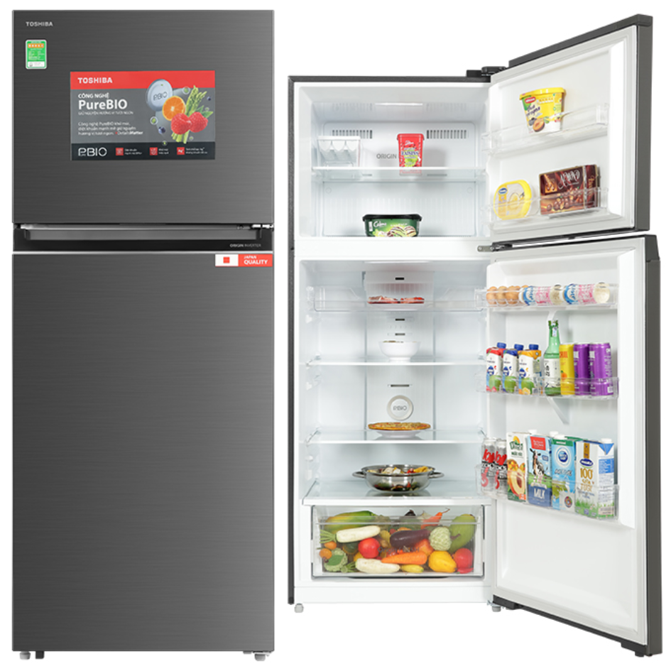 - Mẫu tủ lạnh Toshiba này phù hợp cho gia đình từ 4 - 5 người nhờ có dung tích sử dụng 411 lít.